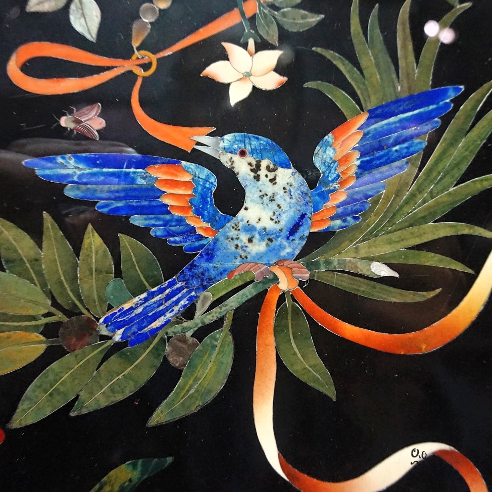 Détail du plateau de la table florentine, dite au « collier de perles »